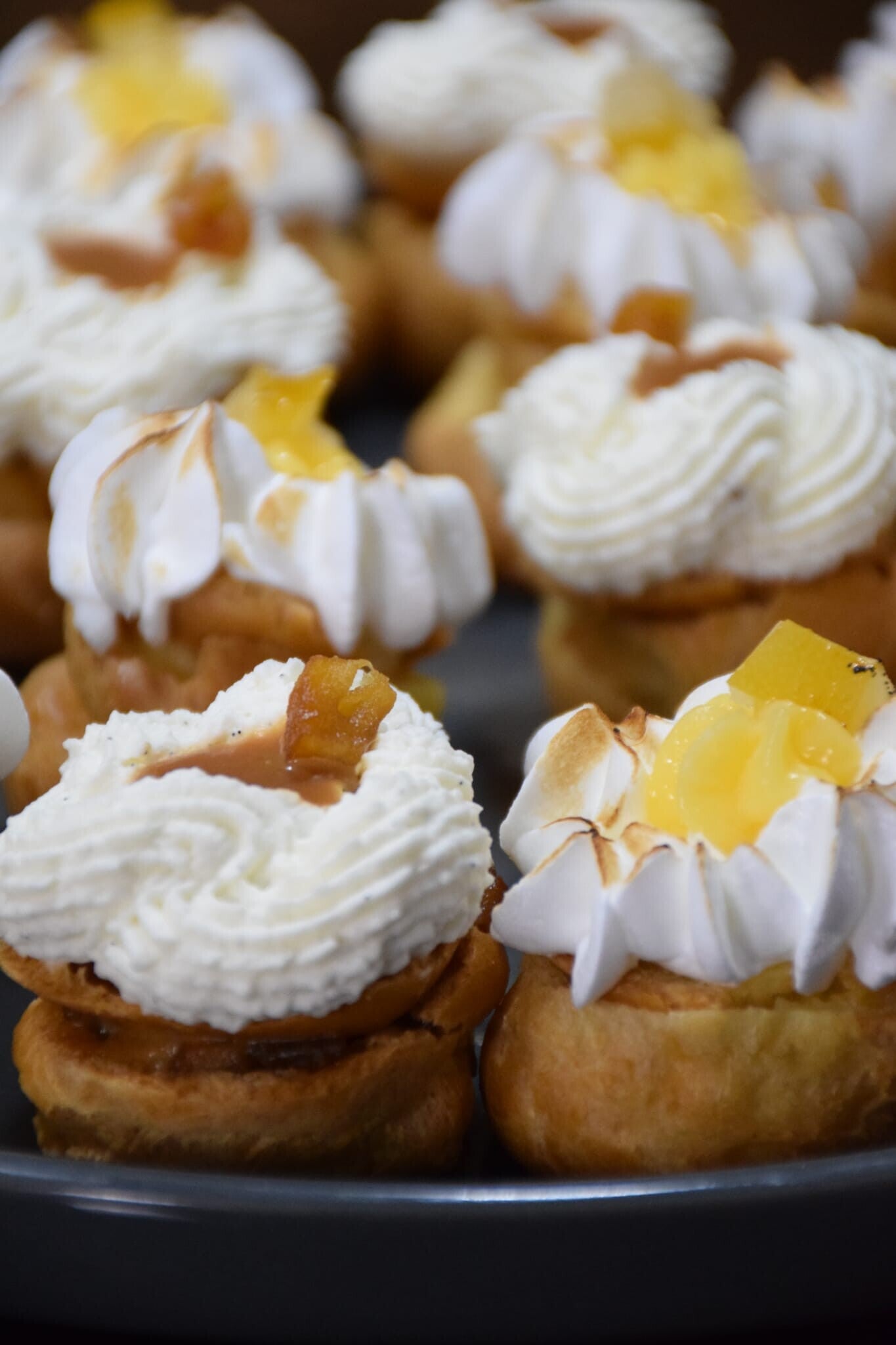 Garnis d’une crème pâtissière maison, ils se déclinent autour de saveurs classiques ou plus audacieuses, au fil des saisons et de l’inspiration.